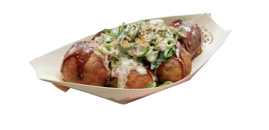たこ焼きの甘辛ソースにごまのたっぷりのまろやかな、でもくどすぎないソースとしゃきしゃきのねぎが相性抜群です。普通のたこ焼きよりもさっぱりと食べられてしまいます。普通のたこ焼きにプラスアルファしてるのに不思議です。