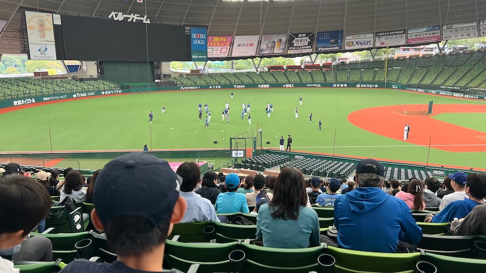 内野S席でも十分近さを感じます。表情までは確認しづらいですが、どの選手がどこにいるかは分かりました。