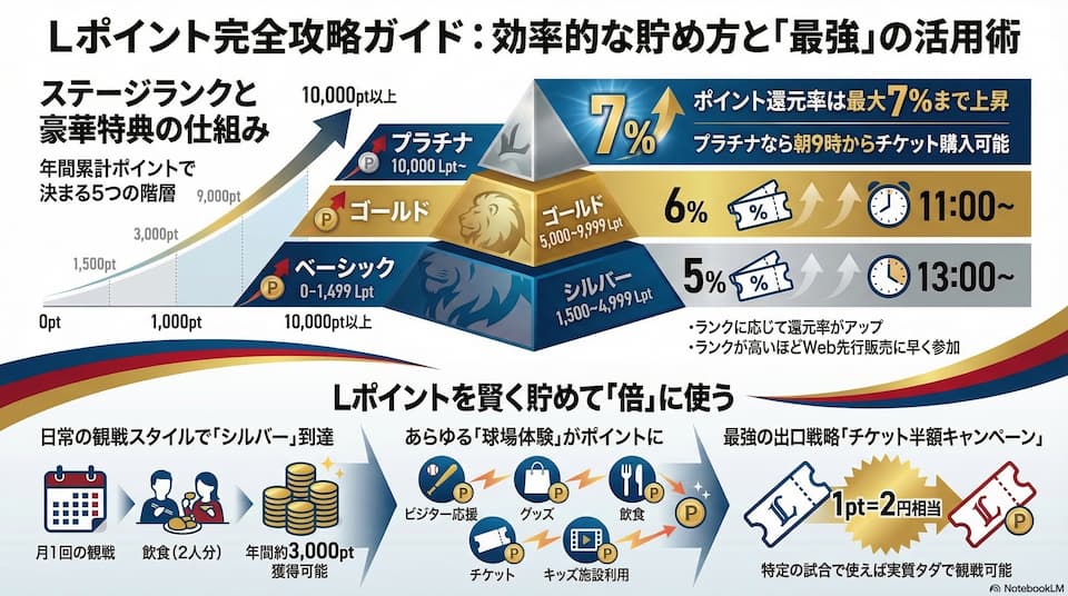 この記事ではLポイントの貯め方とランク制度、一番お得な使い方を徹底解説!最近ライオンズのファンクラブに入会したばかりの方や、ポイ活に興味が無くてLポイントをあまり貯めていなかった方にも参考になると思います。